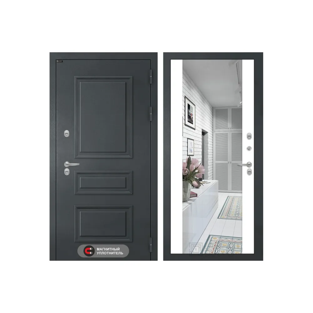 Входная дверь Атлантик с зеркалом Максимум - Белый софт