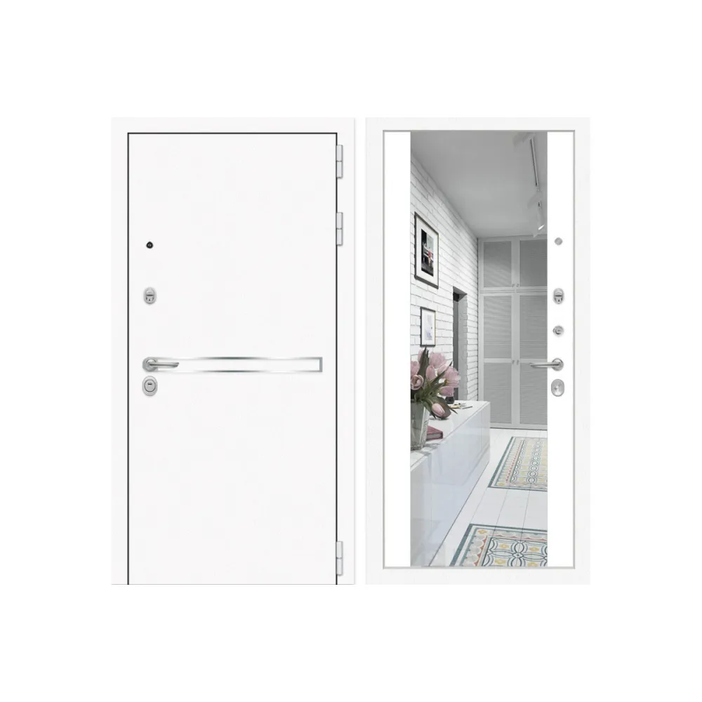 Входная зеркальная белая дверь с зеркалом Йошкар-Ола 3L с Зеркалом Белый матовый (белые двери с зеркалом)